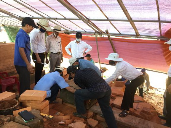 Các chuyên gia Ấn Độ và Việt Nam cùng các kỹ thuật viên tại công trình trùng tu tháp A10 trong những ngày dịch bệnh để kịp hoàn thành tiến độ