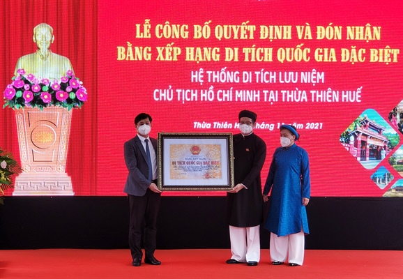 Sau gần 3 thập kỷ được xếp hạng Di tích cấp quốc gia, Hệ thống di tích lưu niệm Chủ tịch Hồ Chí Minh nói trên đã được xếp hạng là Di tích cấp quốc gia đặc biệt. Tính đến nay, Thừa Thiên Huế đã có 3 di tích quốc gia đặc biệt gồm: Hệ thống Quần thể di tích Cố đô Huế, Đường mòn Hồ Chí Minh qua địa bàn Thừa Thiên Huế và Hệ thống di tích lưu niệm Chủ tịch Hồ Chí Minh.