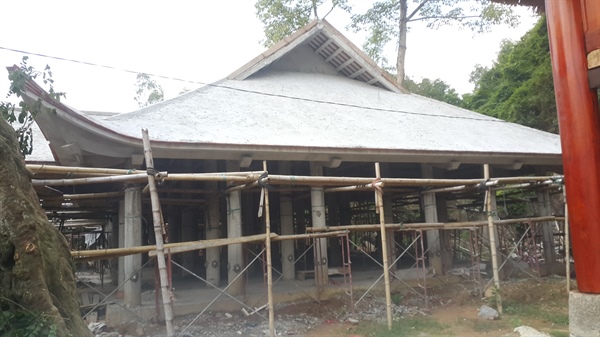 Cụ thể, căn cứ văn bản số 4000/ SVHTTDL-DSVH của Sở VHTTDL Thanh Hóa về việc thỏa thuận thiết kế thì nhà tổ có kết cấu kiến trúc hình chữ Nhất gồm 3 gian bằng vật liệu bê tông cốt thép, vì kèo cấu trúc “giá chiêng chồng rường con nhị”. Nhưng hiện nay địa phương (UBND xã Nga Giáp là đơn vị chủ đầu tư) đã tự ý thay đổi cấu trúc theo kiểu chữ Nhị gồm 7 gian Tiền đường và 5 gian Hậu cung bằng bê tông cốt thép. Hai nhà này được nối với nhau bởi hai nhà cầu hai bên. Như vậy, việc tu bổ, tôn tạo hạng mục nhà Tổ đã không đúng với hồ sơ thiết kế bản vẽ thi công đã được cấp có thẩm quyền phê duyệt. Theo quan sát của chúng tôi, hiện tại nhà thờ tổ đã xây dựng và lắp xong phần khung nhà.
