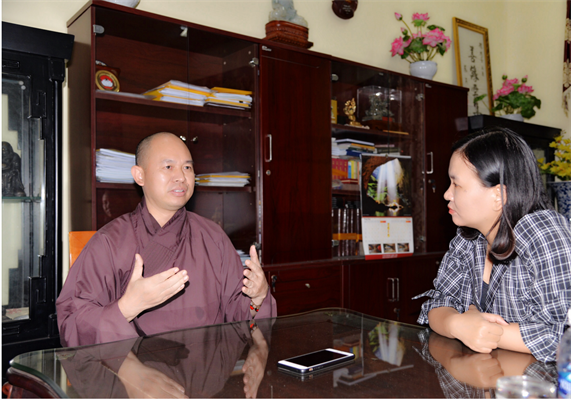 Thượng tọa Thích Đức Thiện trao đổi với PV Văn Hóa Ảnh: NG.NHI