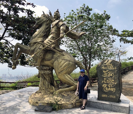 Khách du lịch chụp ảnh lưu niệm bên tượng Hưng Đạo Vương Trần Quốc Tuấn