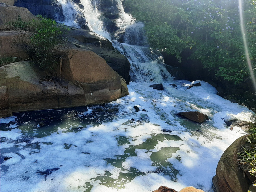 Dòng thác Cam Ly bị sủi bọt, bốc mùi hôi nồng nặc