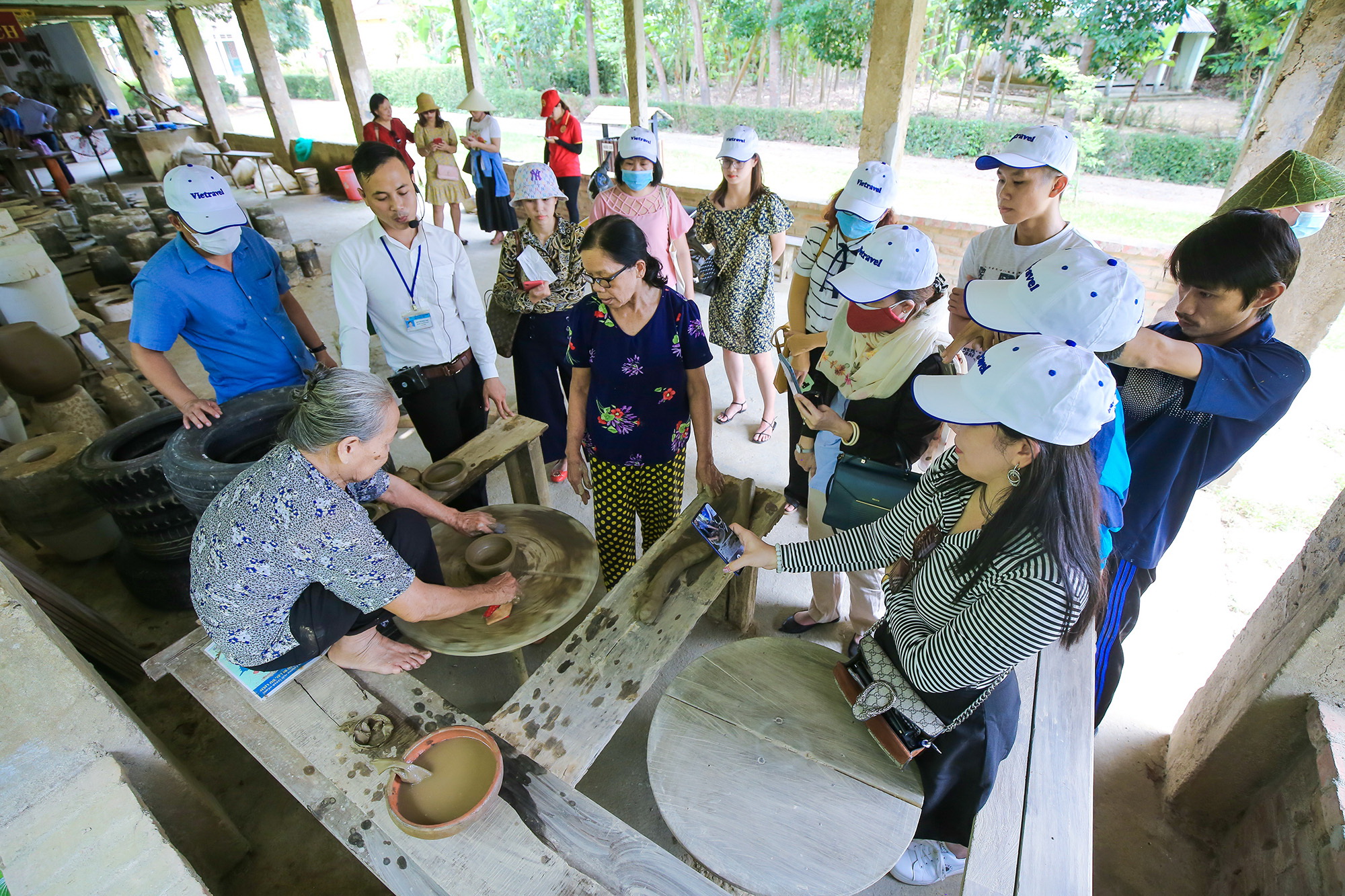 Du khách trải nghiệm làm gốm ở làng cổ Phước Tích (ảnh chụp trước khi dịch Covid-19 bùng phát)