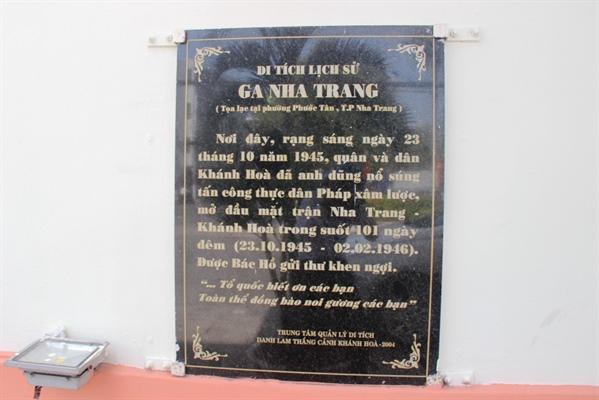Tấm biển di tích lịch sử đang đặt tại ga Nha Trang còn ghi rõ: “Nơi đây, rạng sáng ngày 23 tháng 10 năm 1945, quân và dân Khánh Hòa đã nổ súng tấn công thực dân Pháp xâm lược, mở đầu mặt trận Nha Trang- Khánh Hòa trong suốt trong suốt 101 ngày đêm (23.10.1945 - 2.2.1946). Trận đánh đó đã được Bác Hồ gửi thư khen ngợi: “… Tổ quốc biết ơn các bạn. Toàn thể đồng bào noi gương các bạn”.