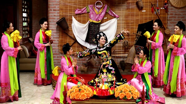 Di sản Văn hóa phi vật thể đại diện của nhân loại- "Tín ngưỡng Thờ Mẫu Tam Phủ của người Việt" được các nghệ sĩ Nhà hát Nghệ thuật truyền thống Nam Định trình diễn trong không gian văn hóa du lịch Nam Định