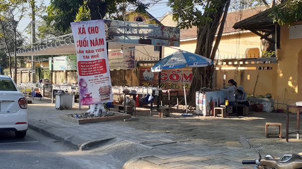 Những ngày cuối năm 2019 Không gian sách Hai Bà Trưng (P.Vĩnh Ninh) trở nên lộn xộn, ngổn ngang. Các tấm biển “Xả kho cuối năm” được dựng lên, quảng cáo giảm giá các loại sách. Hình ảnh Không gian sách trở nên nhếch nhác, hoàn toàn đối lập với những ngày đầu khai trương, làm cho nhiều bạn đọc nuối tiếc về một điểm đến của văn hóa đọc.