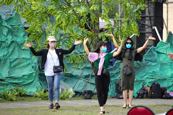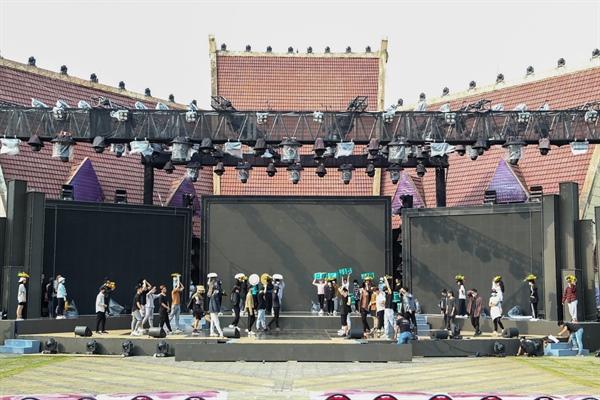 Các diễn viên, nghệ sĩ không quản thời tiết nắng nóng hăng say luyện tập