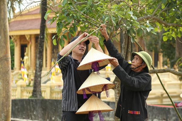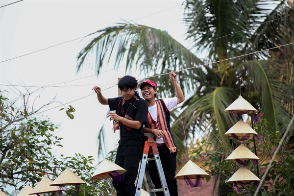 Đồng bào các dân tộc cùng Ban tổ chức hoàn tất những khâu trang trí cuối cùng