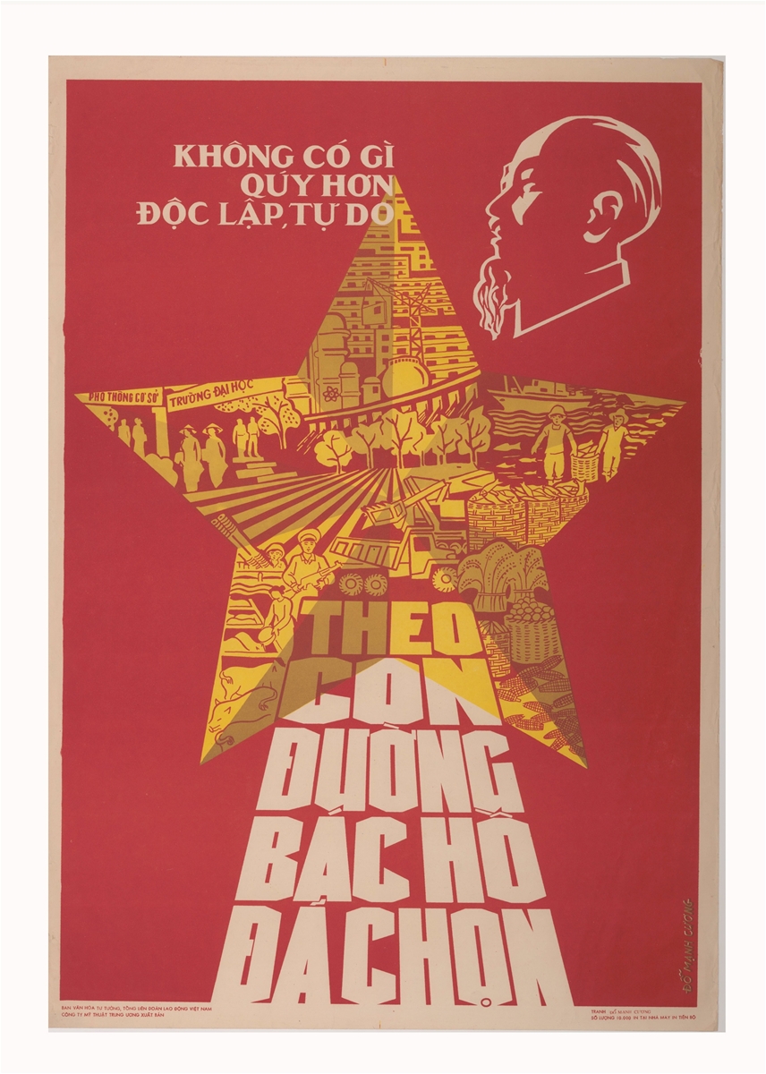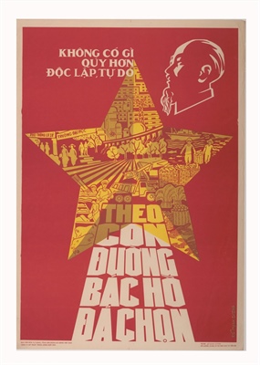 Bức tranh “Theo con đường Bác Hồ đã chọn” là tranh cổ động được xuất bản nhân dịp 60 năm thành lập Đảng Cộng sản Việt Nam (3.2.1930 - 3.2.1990). Qua bức tranh, họa sĩ muốn thể hiện mong muốn của Người khi còn sống. Bác đã dành trọn đời mình cho Tổ quốc. Trước khi qua đời, Bác luôn mong miền Nam được giải phóng hoàn toàn, đất nước thống nhất, kinh tế phát triển, đời sống nhân dân được nâng cao. Bởi vậy, trong bức tranh này, họa sĩ đã thể hiện tất cả các hoạt động của đất nước sau ngày được hoàn toàn giải phóng: học tập, lao động sản xuất… Tất cả các hoạt động được lồng trong hình ngôi sao thể hiện đất nước thống nhất, cũng thể hiện nhân dân Việt Nam luôn tin tưởng và đi theo con đường Bác Hồ đã chọn.