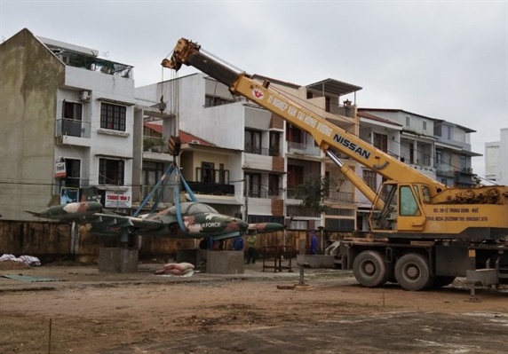 Di chuyển hiện vật nặng ngoài trời của Bảo tàng Lịch sử tỉnh Thừa Thiên Huế đến địa điểm mới tại 268 Điện Biên Phủ, TP Huế hồi tháng 5.2020