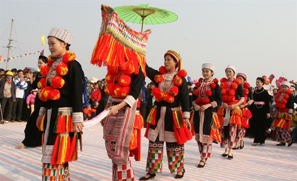 Trang phục truyền thống đồng bào dân tộc Dao trong đám cưới Ảnh: TRẦN HUẤN