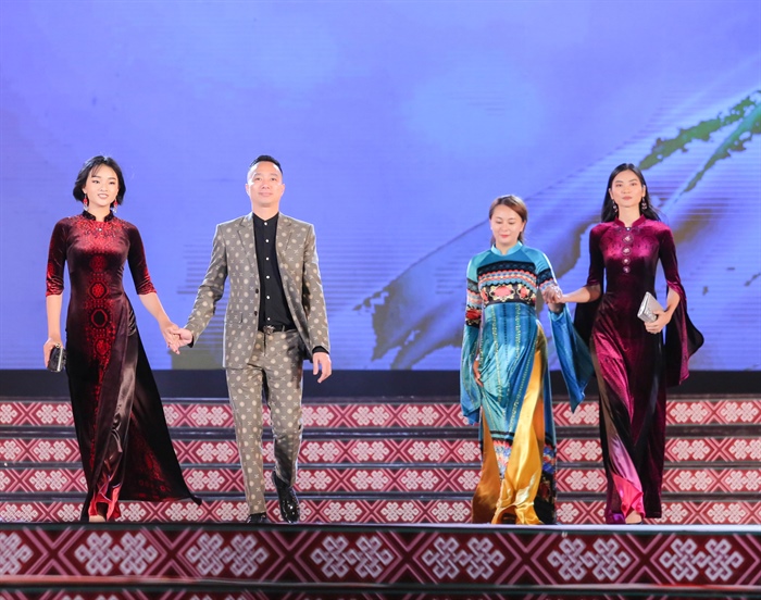 NTK Đỗ Trịnh Hoài Nam và học trò- NTK dân tộc Tày Thảo Giang được BTC chọn lựa trình diễn bộ sưu tập tại Lễ hội