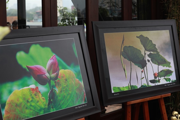 Những tác phẩm về sen được trưng bày trong không gian "Sen trong đời sống văn hóa Việt"