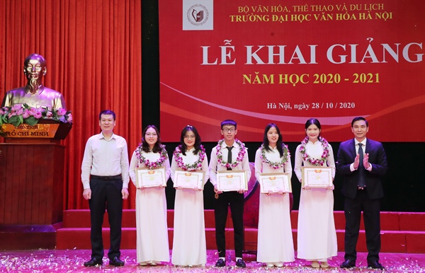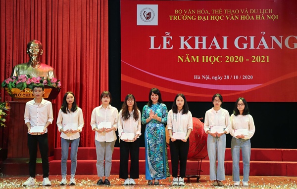 Tại lễ khai giảng, Trường Đại học Văn hóa Hà Nội cũng đã khen thưởng, trao học bổng cho các tân sinh viên đạt kết quả cao nhất trong kỳ thi tuyển sinh vừa qua. Đồng thời, nhà trường cũng trao các phần quà hỗ trợ cho các sinh viên đến từ các tỉnh miền Trung đang gặp nhiều khó khăn do thiên tai lũ lụt.