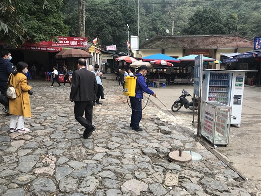Cùng với việc tuyên truyền du khách nâng cao nhận thức phòng chống dịch, BQL cũng đã tăng cường công tác phun khử khuẩn tại một số điểm trong di tích.