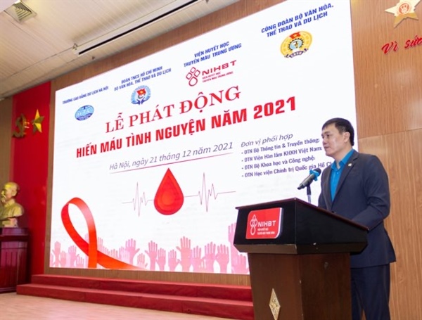 Phát biểu tại Lễ phát động hiến máu tình nguyện năm 2021, Ủy viên Ban Chấp hành Tổng Liên đoàn Lao động Việt Nam, Phó Chủ tịch Thường trực Công đoàn Viên chức Việt Nam Nguyễn Văn Đông đã biểu dương và ghi nhận nghĩa cử nhân ái của cán bộ, công chức, viên chức, người lao động, đoàn viên công đoàn, đoàn viên thanh niên Bộ VHTTDL đã thể hiện trách nhiệm và tình cảm của mình đối với xã hội, bằng hành động thiết thực tham gia hiến máu cứu người. Đồng thời đánh giá cao trong những năm qua, đặc biệt trong năm 2021, Công đoàn Bộ VHTTDL đã tổ chức nhiều lần hiến máu nhân đạo, với tổng số máu hiến tặng là hơn 1000 đơn vị máu, giúp ngành y tế có thêm máu dự trữ, đáp ứng phần nào nhu cầu điều trị cho bệnh nhân. Qua đó, khích lệ cán bộ, công chức, viên chức, người lao động và các bạn đoàn viên thanh niên tiếp tục nêu cao tinh thần xung kích tình nguyện, tham gia hiến máu cứu người.