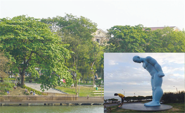 Khu vực công viên tiếp nối với điểm cuối đường đi bộ ven sông Hương (ảnh to) được UBND TP Huế đề xuất đặt tượng “Người đàn ông cúi đầu” (ảnh nhỏ)