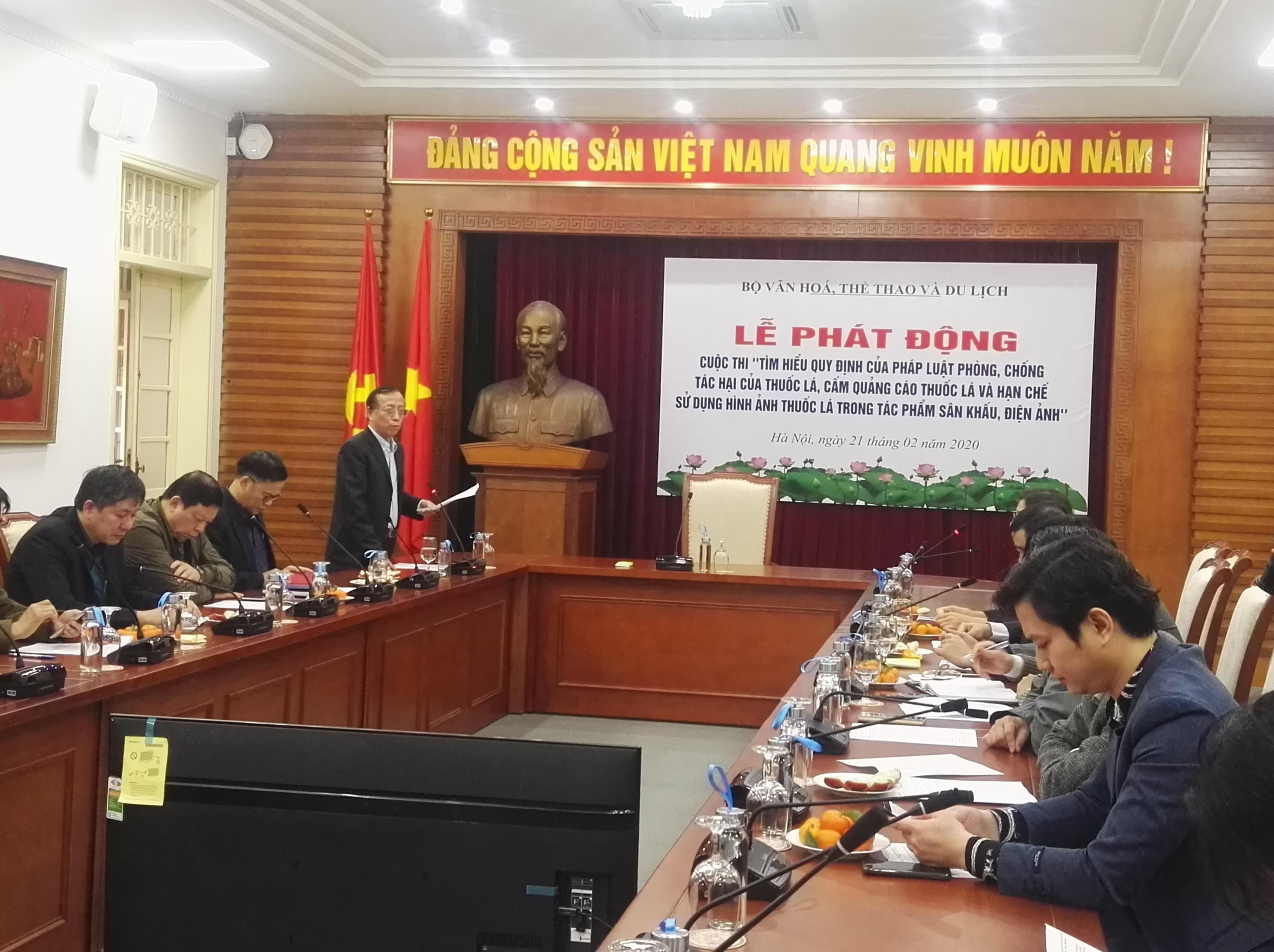 VHO- Ngày 21.2, Bộ VHTTDL đã phát động cuộc thi “Cuộc thi tìm hiểu quy định của pháp luật phòng, chống tác hại của thuốc lá, cấm quảng cáo thuốc lá và hạn chế sử dụng hình ảnh thuốc lá trong tác phẩm sân khấu, điện ảnh”. Lễ tổng kết và trao giải sẽ được tổ chức vào tháng 5.2020.
