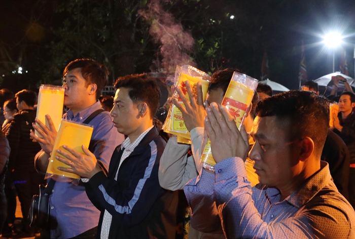 Nhưng từ trước đó, trong đêm 14 rạng sáng ngày Rằm tại sân đền Thiên Trường và trong khuôn viên khu di tích đền Trần, hàng ngàn người dân và du khách thập phương từ các địa phương về đền Trần đã nán lại qua đêm để chờ đến thời điểm BTC chính thức phát ấn. Năm nay thời tiết tương đối thuận lợi nên không gây nhiều khó khăn cho người đi lễ lưu trú tại đền.
