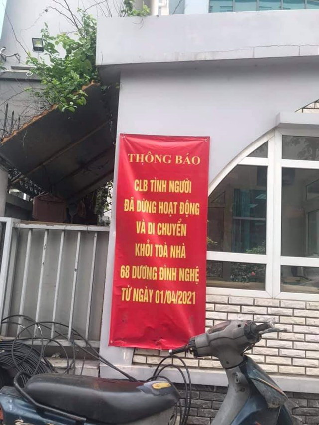 VHO- Sau khi báo chí lên tiếng và các cơ quan chức năng vào cuộc, CLB Tình người đã đưa ra thông báo ngưng hoạt động (ảnh), rời trụ sở chính và đóng hotline. Hiện CLB Tình người đã di chuyển khỏi trụ sở chính có địa chỉ tại tầng 3 Tòa nhà 68 Dương Đình Nghệ, Yên Hòa, Cầu Giấy, Hà Nội. Trước lối ra vào của tòa nhà có để thông báo: “CLB Tình người đã ngừng hoạt động và di chuyển khỏi tòa nhà 68 Dương Đình Nghệ từ ngày 1.4.2021”.