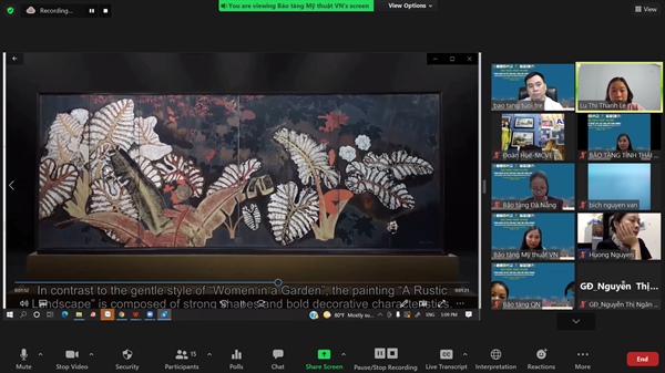 Khẳng định việc ứng dụng hiệu quả công nghệ số, tăng cường kết nối Bảo tàng với công chúng nhằm giới thiệu, quảng bá giá trị di sản bằng hình thức trực tuyến hiện nay không còn là giải pháp tình thế mà là xu hướng tất yếu, bà Nguyễn Thị Hữu (Bảo tàng Mỹ thuật Việt Nam) cho biết, Bảo tàng Mỹ thuật đã có nhiều hoạt động chuyển đổi số hiệu quả trong thời gian qua. Tháng 4.2021, sau hơn hai năm chuẩn bị, Bảo tàng Mỹ thuật Việt Nam ra mắt Ứng dụng thuyết minh đa phương tiện iMuseumVFA. Trong tầm tay, du khách có thể tự do tham quan Bảo tàng Mỹ thuật Việt Nam bất cứ khi nào và ở bất cứ nơi đâu. IMuseumVFA đã nhận được những phản hồi tích cực từ các nhà nghiên cứu, giới chuyên môn, công chúng trong và ngoài nước. Tháng 8.2021, Bảo tàng tiếp tục ra mắt công nghệ tham quan trực tuyến 3D Tour, giới thiệu không gian trưng bày thường xuyên. 3D Tour liên kết link với iMuseumVFA để khách tham quan có thể trả phí, khai thác thông tin chi tiết hơn và tham quan trực tuyến khi có nhu cầu.