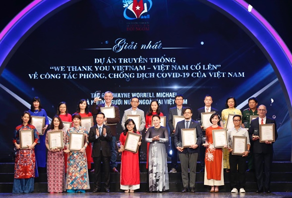 Chủ tịch Quốc hội Nguyễn Thị Kim Ngân chúc mừng thành công của Giải thưởng toàn quốc về thông tin đối ngoại lần thứ VI và các tác giả, nhóm tác giả đoạt giải. Các tác phẩm, sản phẩm thông tin đối ngoại đã bám sát các đề tài thời sự nóng hổi của thế giới và đất nước, vừa đóng góp vào việc tăng cường nhận thức, đồng thuận xã hội, vừa tích cực quảng bá, giới thiệu hình ảnh đất nước, con người, văn hóa Việt Nam ra thế giới.