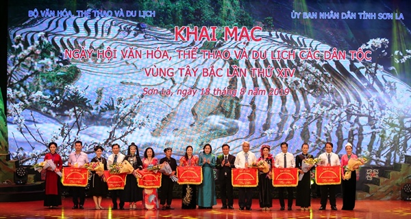 Xuyên suốt Lễ Khai mạc là Chương trình nghệ thuật hoành tráng với chủ đề “Tây Bắc - Sơn La hội tụ và lan tỏa” được dàn dựng công phu, sáng tạo, được tập thể nghệ sỹ, diễn viên Nhà hát ca múa nhạc tỉnh Sơn La và Trường Trung cấp Văn hóa Nghệ thuật và Du lịch tỉnh biểu diễn hết sức sinh động, thể hiện sâu sắc nét văn hóa truyền thống đặc sắc của các dân tộc vùng cao Tây Bắc, mang đến cho khán giả trong nước và quốc tế hình ảnh về một Tây Bắc - Sơn La với nhiều nét văn hóa truyền thống độc đáo, quyến rũ, một Tây Bắc - Sơn La hùng vĩ, giàu tiềm năng đang bừng sáng vươn lên cùng cả nước, một Tây Bắc - Sơn La đang trên đà hội nhập và phát triển. Trước đó, trong chiều 18.8, tại Quảng trường Tây Bắc, Thứ trưởng Phạm Thị Thủy cùng Đoàn đại biểu của 7 tỉnh tham gia Ngày hội đã dâng hoa báo công tại Tượng đài Bác Hồ với đồng bào các dân tộc Tây Bắc.
