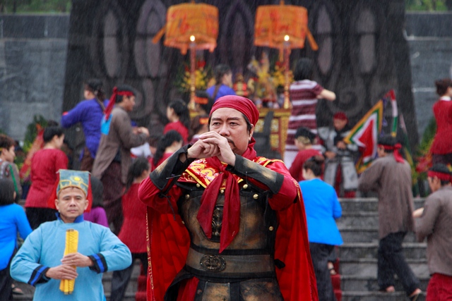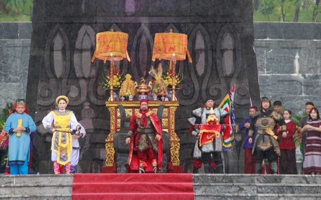 Hoạt cảnh tái hiện lại nghi lễ Nguyễn Huệ lên ngôi Hoàng đế và xuất quân đánh giặc Thanh xâm lược được thể hiện trong không khí trang nghiêm và hào hùng. Mặc dù trời mưa rét nhưng đông đảo người dân địa phương và du khách đã đến tham dự và dâng hương tưởng niệm.
