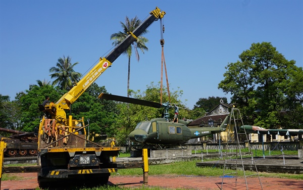 Sáng ngày 5.5, hơn 20 cán bộ, chiến sĩ của các đơn vị chuyên môn thuộc Bộ Chỉ huy Quân sự tỉnh Thừa Thiên Huế đã có mặt từ sớm để bắt tay vào công việc tháo dỡ hiện vật hạng nặng, đang được trưng bày ngoài trời tại khuôn viên Bảo tàng Lịch sử tỉnh. Hiện tại khuôn viên trưng bày ngoài trời của bảo tàng có 18 hiện vật hình khối lớn, gồm: 6 xe tăng, 6 khẩu pháo, 4 máy bay và 2 đuôi máy bay có kích thước và trọng lượng lớn. Tại hiện trường, các chiến sĩ của Bộ Chỉ huy Quân sự tỉnh thực hiện tháo rời các hiện vật máy bay trước.