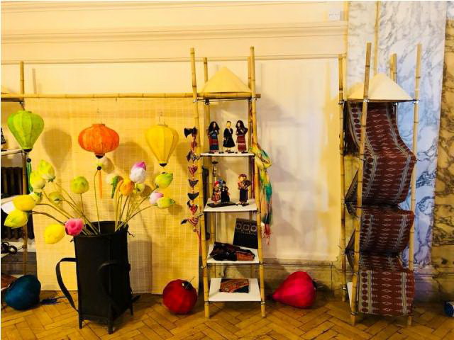 Một góc triển lãm “Sắc màu Việt Nam” tại Thủ đô London (Vương quốc Anh) của Trung tâm Triển lãm VHNT Việt Nam (tháng 10.2018)