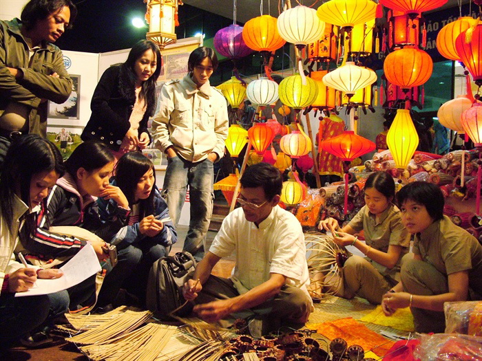 Nghệ nhân trình diễn làm đèn lồng trong Ngày Di sản Văn hoá Việt Nam