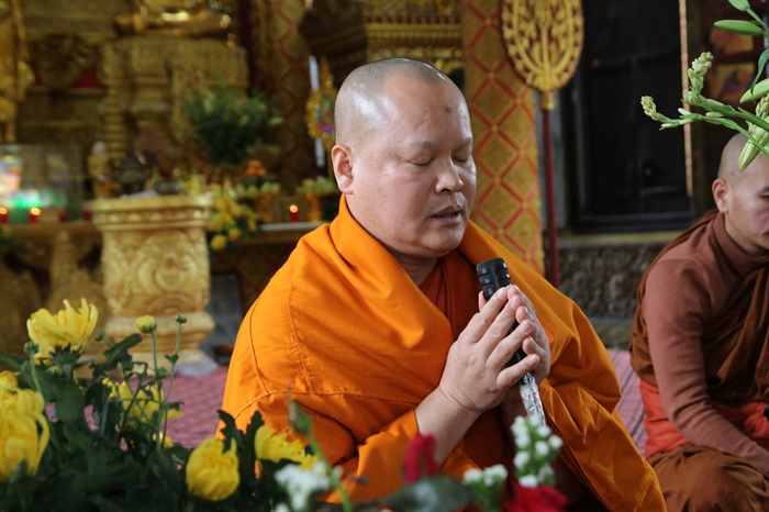 Lễ Tam Bảo trong Chánh điện chùa Khmer.