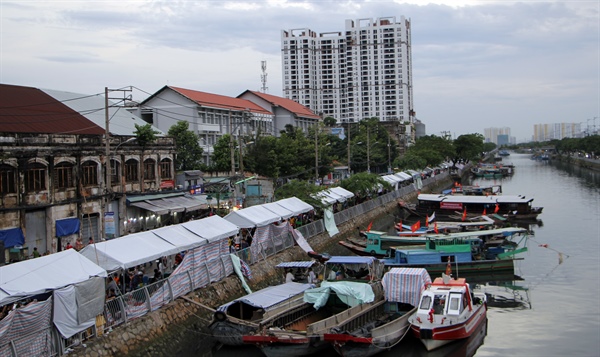 Đoạn sông nơi cập bến của ghe tàu chở hàng từ các tỉnh ĐBSCL lên phục vụ Tuần lễ trái cây