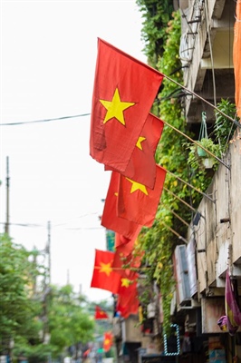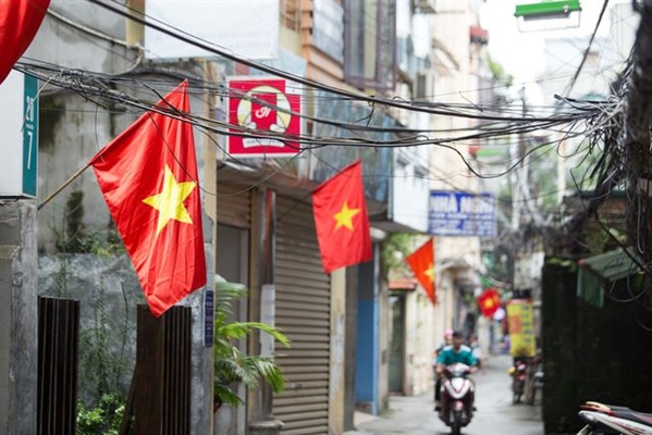 Những lá cờ đỏ len lỏi trong từng con ngõ nhỏ