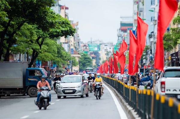 Đường phố Hà Nội đỏ thắm sắc cờ chào mừng Quốc khánh 2.9