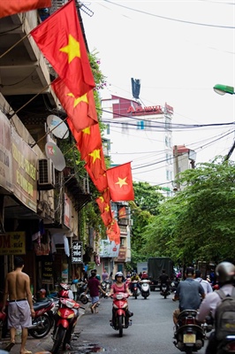 Dịp lễ Quốc khánh 2.9 khắp phố phường Hà Nội nhuộm sắc đỏ thắm của màu cờ Tổ quốc