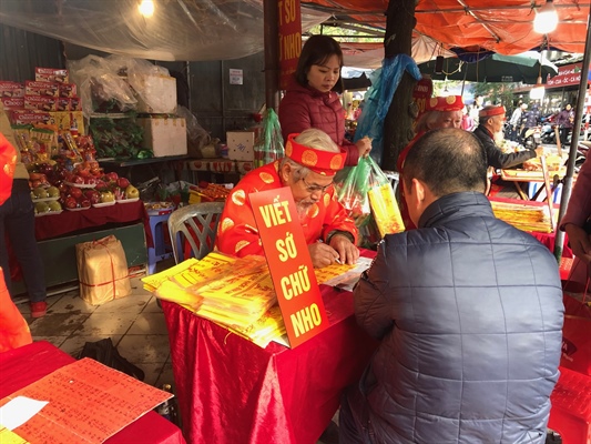 Nhiều khách đến hành hương đặt viết sớ tại cổng Phủ Tây Hồ, Hà Nội