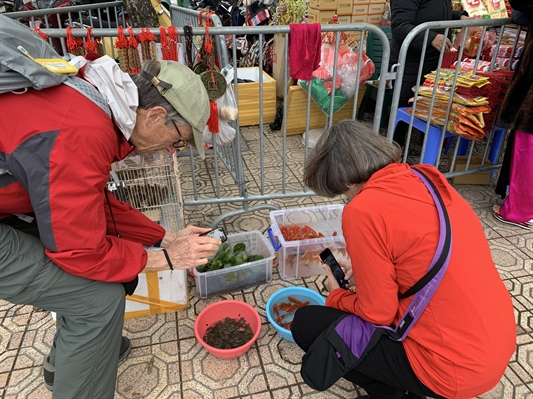 Khách du lịch nước ngoài tỏ ra thích thú với tập tục phóng sinh của người Việt