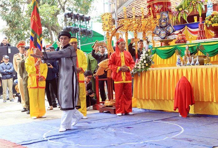 Chủ lễ vung dao thực hiện động tác “chỉ trời vạch đất”