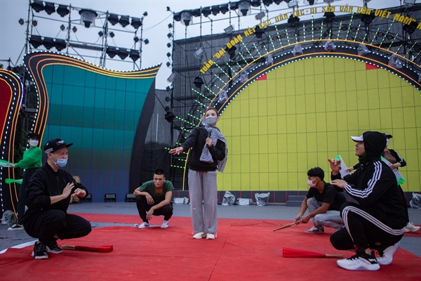 Các nghệ sĩ, diễn viên tất bật khớp nhạc cho các tiết mục biểu diễn