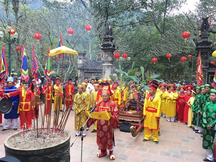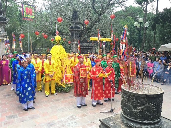 Năm nay, sau các nghi lễ khai hội truyền thống, lộc hoa tre và trầu cau được đặt trên các ban thờ để nhân dân và du khách xin lộc đầu năm.