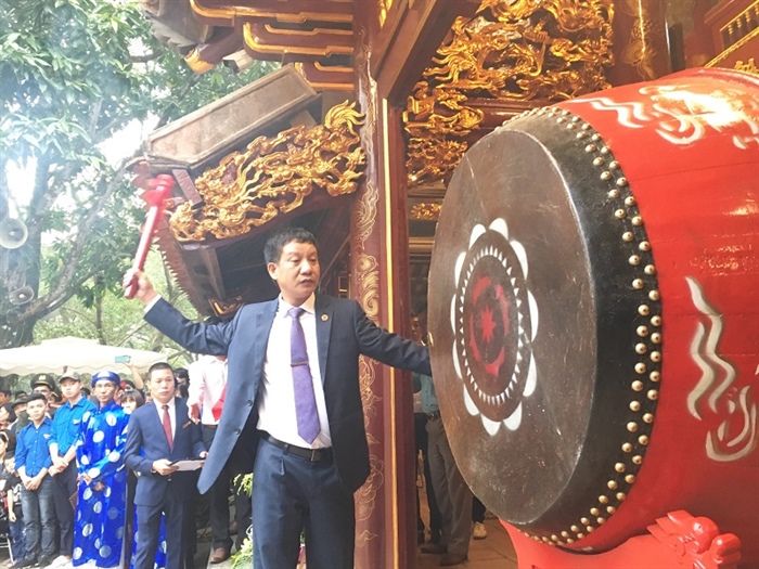 Chủ tịch UBND huyện Sóc Sơn Phạm Văn Minh đánh trống khai hội