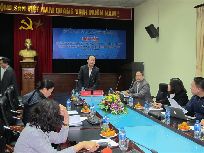 Ông Phan Đình Tân, Phó Chủ tịch Chuyên trách Hội đồng Lý luận, phê bình VH-NT Trung ương chủ trì cuộc họp báo