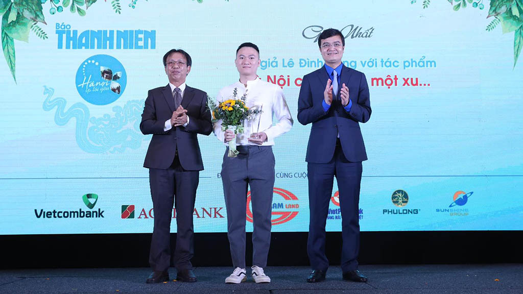 Ông Chử Xuân Dũng, Phó Chủ tịch UBND TP. Hà Nội và bà Đặng Thị Phương Thảo, Phó Tổng biên tập Báo Thanh Niên, trao giải thưởng cho các tác giả đoạt giải nhì