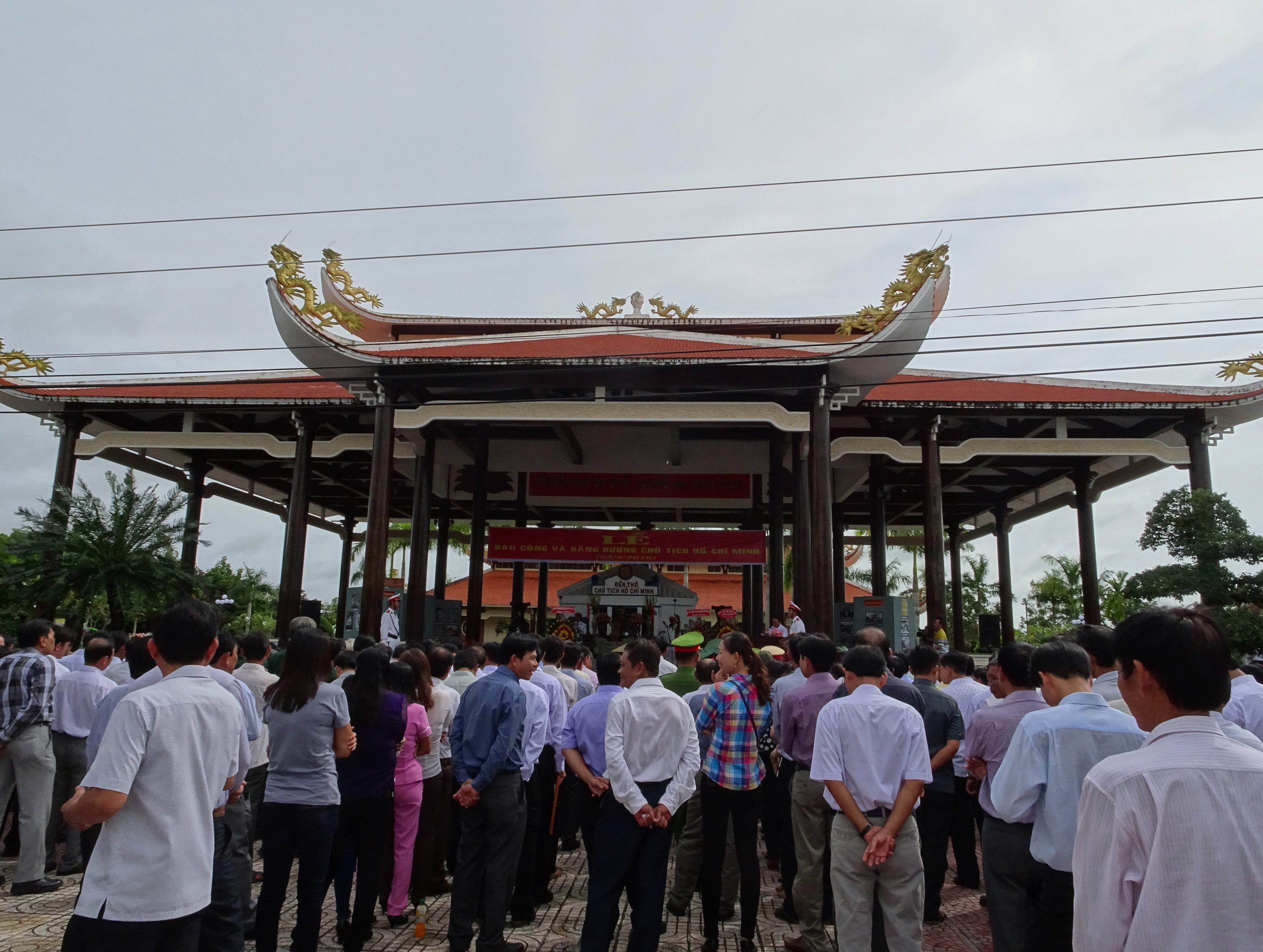 Cán bộ và nhân dân huyện Vĩnh Lợi dâng hương tại Đền thờ Bác Hồ (xã Châu Thới) nhân Ngày sinh Chủ tịch Hồ Chí Minh