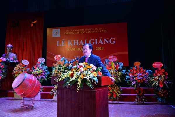 Thứ trưởng Tạ Quang Đông đánh trống khai giảng Năm học 2019-2020 của Trường Đại học Văn hóa Hà Nội
