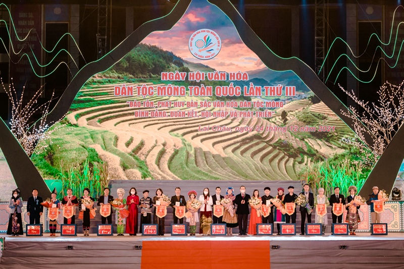 | Ngày hội Văn hóa dân tộc Mông lần thứ III năm 2021 diễn ra tại tỉnh Lai Châu do Bộ VHTTDL phối hợp với UBND tỉnh Lai Châu tổ chức từ ngày 24 – 26.12, với nhiều hoạt động văn hóa, thể thao và du lịch ý nghĩa được tổ chức gồm: Không gian trưng bày giới thiệu, quảng bá sản phẩm văn hóa và du lịch; Thi giã bánh giầy; Trình diễn, giới thiệu trích đoạn lễ hội, nghi thức sinh hoạt văn hóa dân tộc Mông; Liên hoan văn nghệ quần chúng, trình diễn trang phục dân tộc Mông; Trưng bày, triển lãm đặc trưng văn hóa dân tộc Mông. Tổ chức các trò chơi: Tù lu, bắn nỏ, kéo co, đẩy gậy. Tổ chức đoàn Famtrip khảo sát du lịch cộng đồng, du lịch sinh thái tại tỉnh Lai Châu; Tọa đàm: “Đánh giá các sản phẩm du lịch của Lai Châu và trao đổi kinh nghiệm, đề xuất giải pháp tháo gỡ khó khăn, vướng mắc, cải thiện môi trường du lịch, thu hút các doanh nghiệp lữ hành đưa du khách đến Lại Châu, góp phần tăng doanh thu định du lịch Lai Châu phát triển theo hướng bền vững"; Trải nghiệm Festival dù lượn tại huyện Tam Đường. |