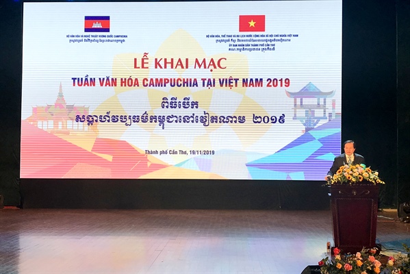 Diễn ra từ ngày 18-23.11 tại thành phố Cần Thơ và tỉnh An Giang, Bộ VHTTDL Việt Nam phối hợp Bộ Văn hóa và Nghệ thuật Campuchia tổ chức “Tuần Văn hóa Campuchia tại Việt Nam”. Đây là hoạt động quan trọng nhằm triển khai Kế hoạch hợp tác văn hóa nghệ thuật giai đoạn 2018-2022 giữa hai nước. Chương trình diễn ra với các chương trình biểu diễn nghệ thuật của Campuchia và triển lãm ảnh, trang phục và đồ thủ công mỹ nghệ của Campuchia.