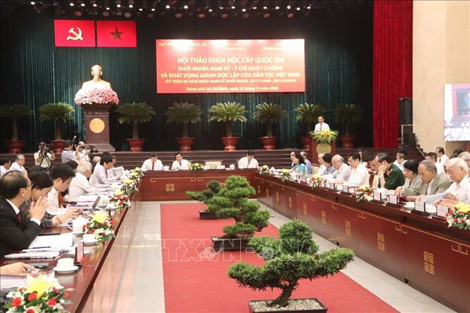 Phát biểu đề dẫn, GS.TS Nguyễn Xuân Thắng, Bí thư Trung ương Đảng, Giám đốc Học viện Chính trị Quốc gia Hồ Chí Minh, Chủ tịch Hội đồng Lý luận Trung ương, nhấn mạnh: Cách đây 80 năm, dưới sự lãnh đạo của Xứ ủy Nam Kỳ, cuộc khởi nghĩa Nam Kỳ nổ ra đã làm rung chuyển chính quyền cai trị của thực dân Pháp và tay sai ở Nam Kỳ, trở thành tiếng súng báo hiệu cho sự thắng lợi tất yếu của cuộc tổng khởi nghĩa trên toàn quốc, đi vào lịch sử như một bản hùng ca về tinh thần yêu nước, ý chí quật cường, sự hy sinh oanh liệt và khát vọng cháy bỏng giành độc lập, tự do của dân tộc Việt Nam. Cuộc khởi nghĩa Nam Kỳ mang tính chất của một cuộc cách mạng giải phóng dân tộc, tính chất nhân dân rộng rãi, sâu sắc. Cuộc Khởi nghĩa Nam Kỳ đã đi vào lịch sử như một trong những bản hùng ca bi tráng nhất trong sự nghiệp đấu tranh cách mạng của nhân dân Nam Bộ; thể hiện tinh thần yêu nước cháy bỏng; khẳng định bản lĩnh kiên cường, bất khuất, ý chí quyết chiến, quyết thắng, một lòng, một dạ đi theo Đảng, theo cách mạng của quân dân Nam Bộ vì khát vọng độc lập của dân tộc và tự do, hạnh phúc của nhân dân, “là gương anh hùng, dũng cảm cho nhân dân cả nước noi theo”.