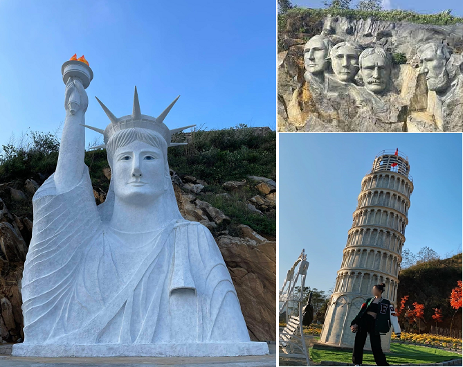 Những bức tượng bên vách núi ở một điểm du lịch cùng tượng “Nữ thần tự do” tại Sa Pa
